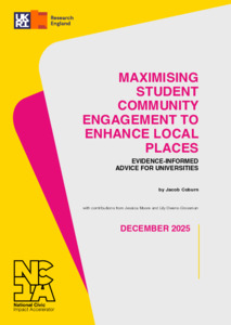 Coburn, J. (2025) Maximising student community engagement to enhance local places: evidence informed advice for universities. Discussion Paper. Institute for Community Studies, United Kingdom.